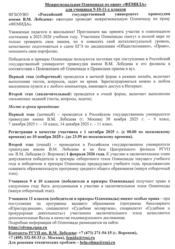 Межрегиональная Олимпиада по праву "Фемида".